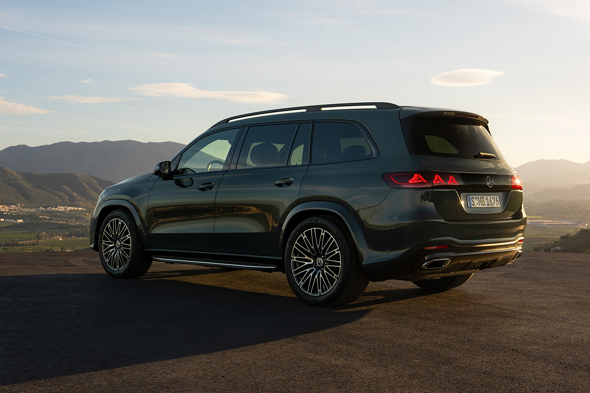 Der neu gestaltete Frontstoßfänger verleiht dem GLS eine nochmals selbstbewusstere und ausdrucksstärkere Präsenz. Ein Black Panel verbindet die Scheinwerfer optisch mit dem Kühlergrill und schafft eine harmonische, zeitgemäße Frontansicht. Die Scheinwerfer und Heckleuchten mit ihrem charakteristischen Stern-Design sorgen bei Tag und Nacht für sofortige Wiedererkennbarkeit und unterstreichen zugleich dezent den verfeinerten, statusbetonenden Charakter des Modells. Am Heck verbindet ein Design-Zierelement mit integriertem Mercedes-Benz Stern die Rückleuchten zu einem fließenden Element und betont die beeindruckende Fahrzeugbreite. Neu im Lack-Portfolio sind Dark Petrol uni sowie MANUFAKTUR patagonienrot metallic. Zwei neue, glanzgedrehte Leichtmetallräder in der Größe 21 Zoll erweitern ebenso die Auswahl. Dabei handelt es sich um ein aerodynamisch optimiertes, individuelles Kreuzspeichen-Rad sowie ein statusorientiertes flächiges Rad mit schwarzem Zentrum. Neu dazu kommt auch das 22-Zoll AMG Rad im Vielspeichen-Design in zwei Farbvarianten.