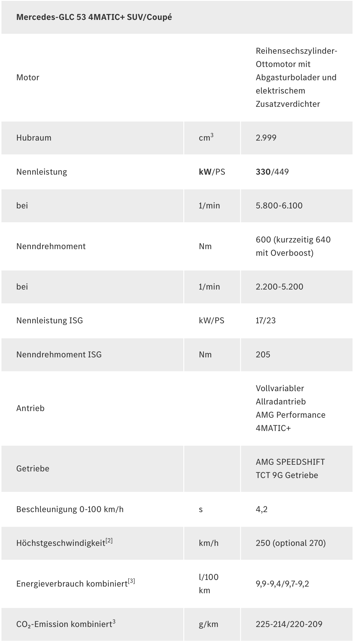 Mercedes-AMG GLC 53 4MATIC+ Coupé | Energieverbrauch kombiniert: 9,7-9,2 l/100 km | CO₂-Emissionen kombiniert: 220-209 g/km | CO₂-Klasse: G1